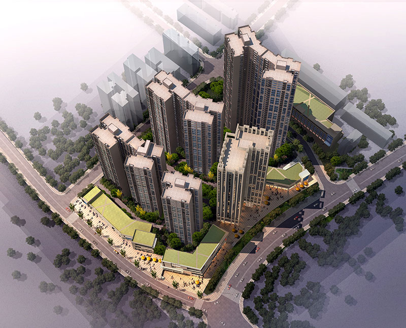 小(xiǎo)區(qū)功能分區(qū)明(míng)确,商住分離,商業服務設施沿外圍道(dào)路布置與住宅完全分離,即讓業主享受小(xiǎo)區(qū)的恬靜又讓業主感受到便利。住宅建築外立面采用褐色面磚搭配大(dà)面積玻璃窗,商業采用灰色麻石幕牆。