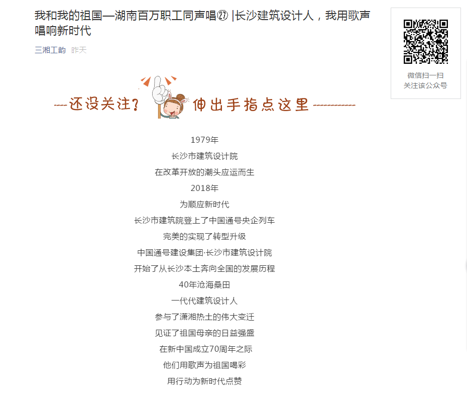 三湘工韻公衆号推文《長沙建築設計(jì)人(rén),我用歌(gē)聲唱(chàng)響新時(shí)代》