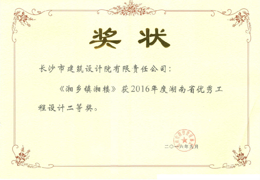 1、《湘鄉鎮湘樓》項目榮獲湖(hú)南省優秀工程設計(jì)二等獎及2016年度湖(hú)南省十佳建築。