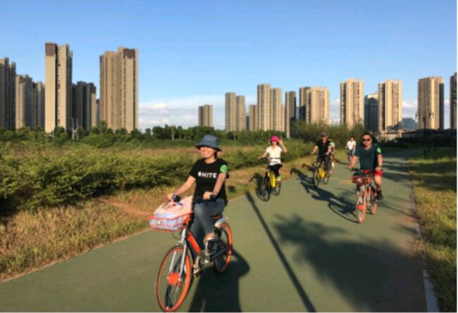 靳江河(hé)綠道(dào)擁有(yǒu)獨立路權,你(nǐ)無需擔心機動車(chē)騷擾,租車(chē)、停車(chē)十分方便,也不用擔心路程太長,女伴吃(chī)不消,路程短(duǎn)了,男伴不盡興的問題。早晨騎行(xíng)在這條路線上(shàng),你(nǐ)可(kě)以欣賞洋湖(hú)的日出,感受城市中的田園魅力;傍晚時(shí)分,你(nǐ)能聽(tīng)見鳥鳴,望夕陽美景。在這裏無論是和(hé)家(jiā)人(rén)、愛(ài)人(rén)還(hái)是朋友(yǒu)一起騎行(xíng),都是不錯的選擇。